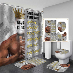คิงควีนเซ็กซี่อเมริกันแอฟริกัน4ชิ้นดีไซน์ศิลปะสีดำผู้หญิงผู้ชายคู่รักชุดม่านอาบน้ำคู่